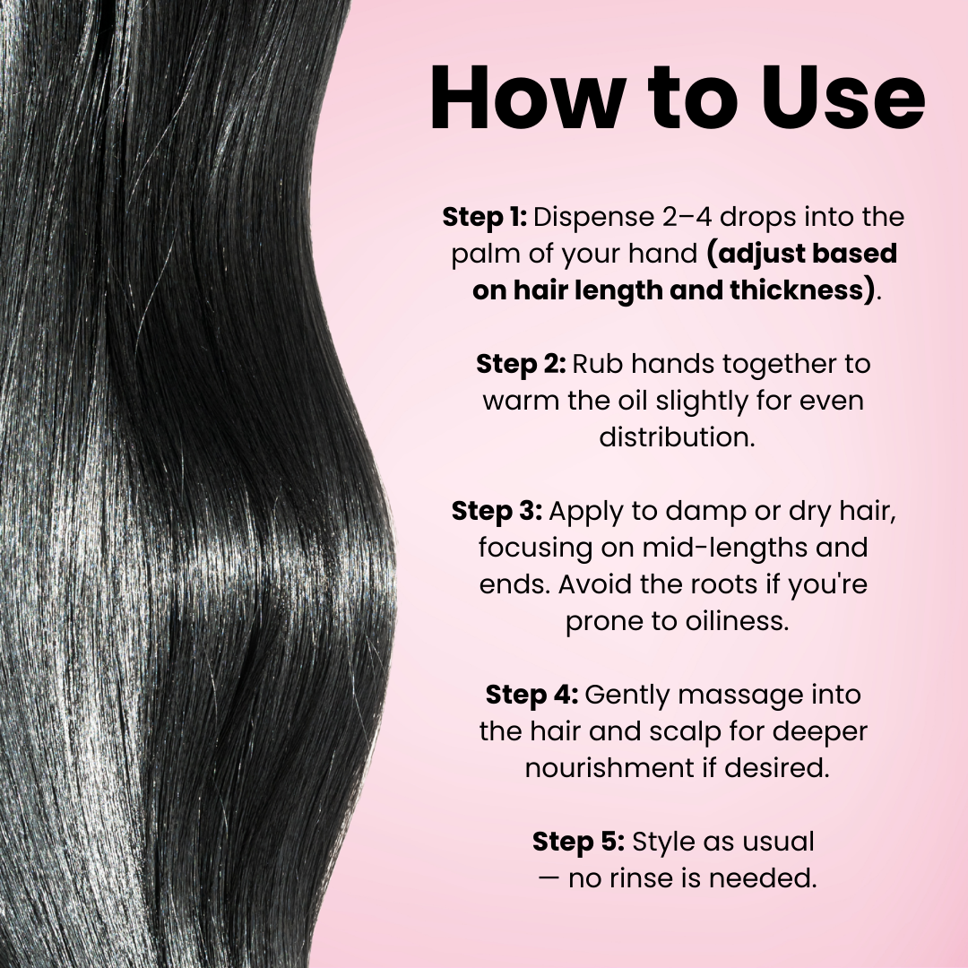 Our oil is designed for all hair types, including straight, wavy, curly, coily, thick, fine, dry, and color-treated hair.